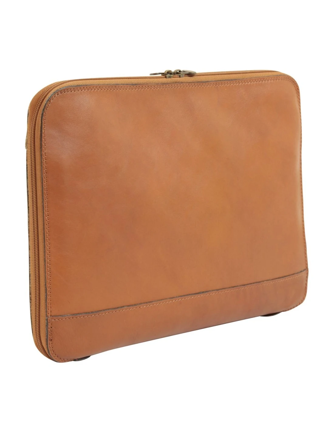 Astuccio porta documenti in pelle artigianale, fatto in pelle pieno fiore. Ha una tasca esterna con zip e un interno foderato in pelle e tessuto, finemente organizzato con scomparti per biglietti da visita, carte di credito, cellulare, penne, calcolatrice e altro ancora. Leggero ed elegante, è perfetto per tutte le tue esigenze lavorative o di tempo libero.