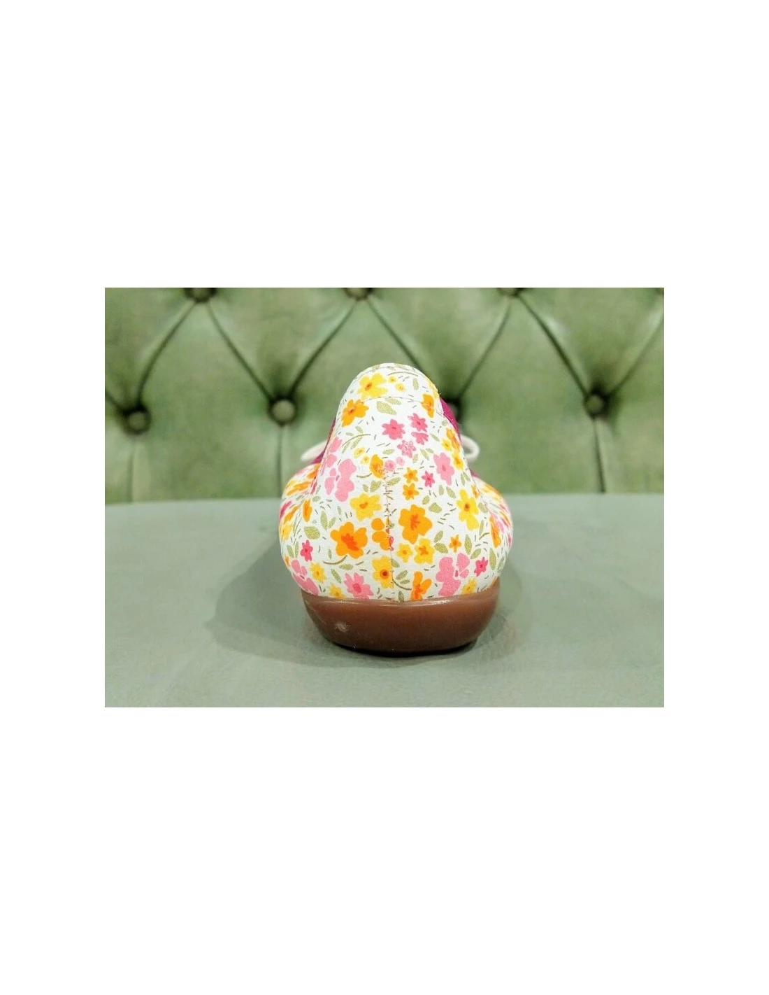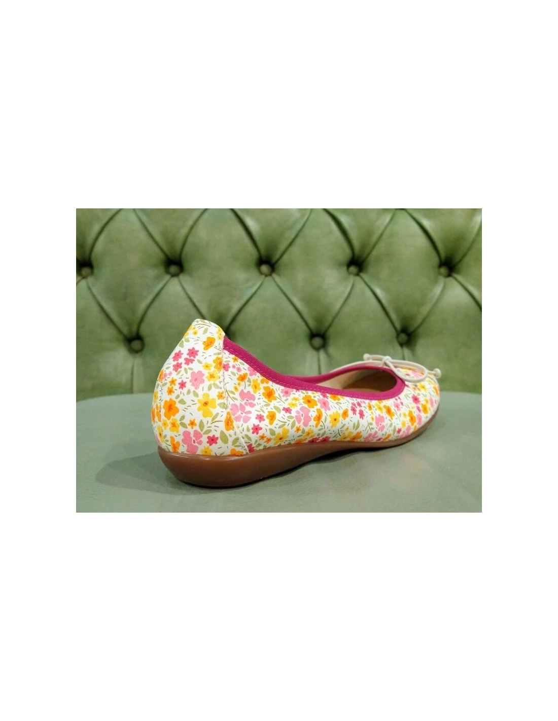 In vera pelle morbida, colorate con motivo floreale. Suola comoda in gomma. Con fiocchetto bianco. Le ballerine sono disponibili anche rosse, blunereplatino
