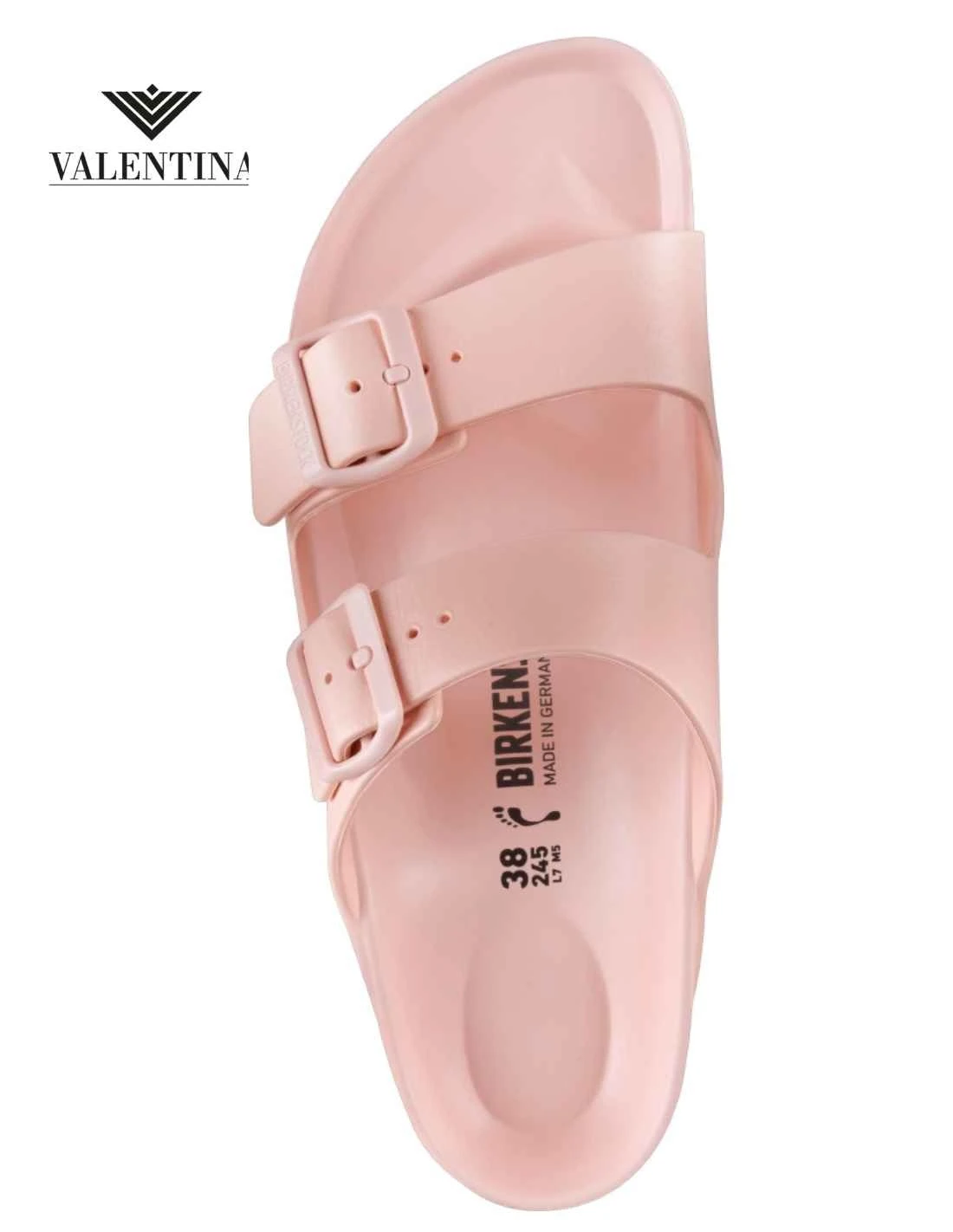 Colore light rose, rosa chiaro. Sandali a doppia fascia Birkenstock Arizona in versione extralight e resistente all’acqua. Fatti in materiale EVA, una gomma ultraleggera che non teme l’acqua. Ideali per i viaggi, la piscina, ilmare, gli hotel.