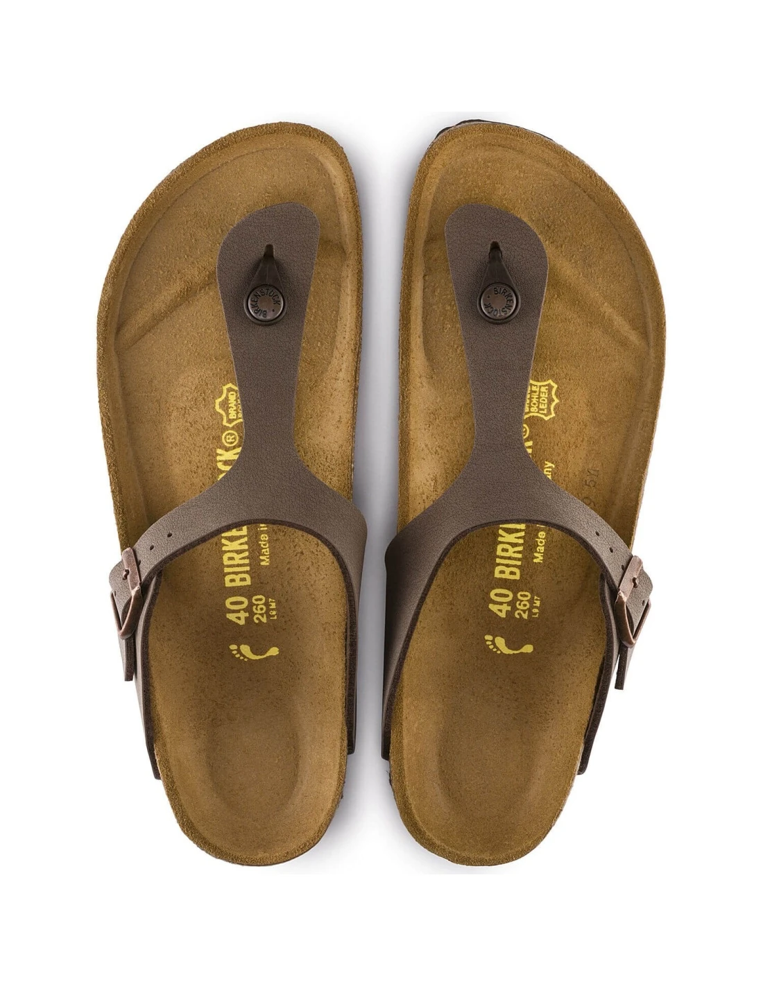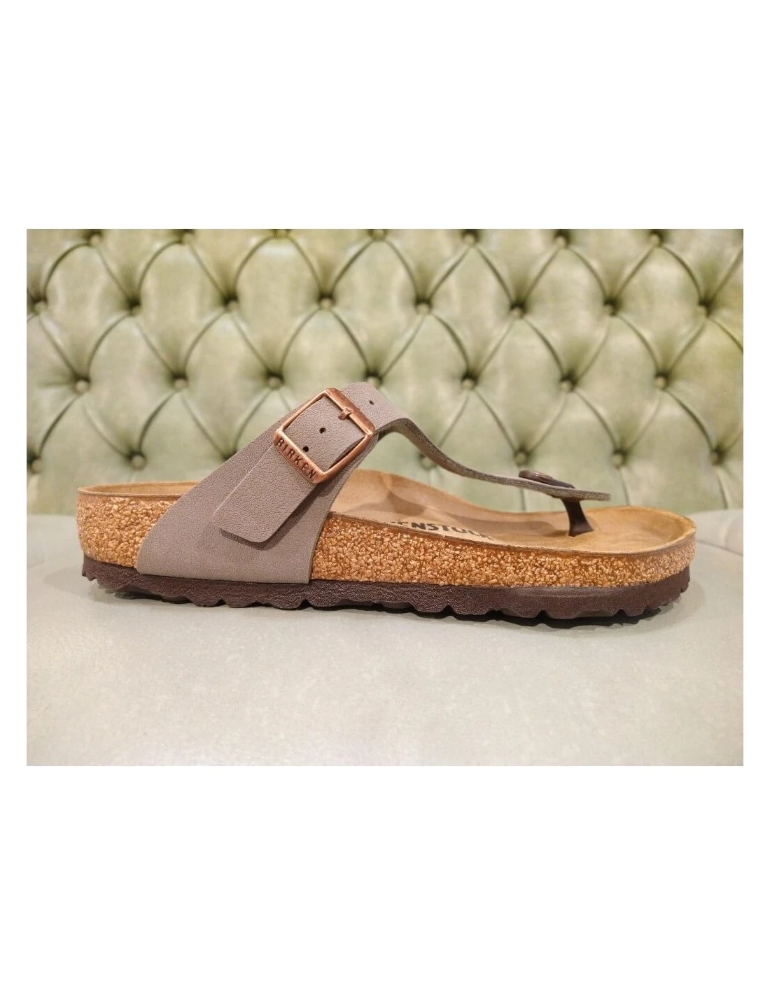 Sandali Birkenstock unisex uomo e donna, stile infradito. Colore mocca, materiale Birko flor Nubuck, calzata normale. Sottopiede classico con la forma anatomica molto comoda e in pelle scamosciata, perfetta per l’estate.