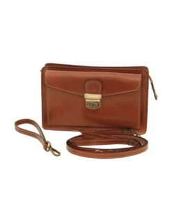 Pregiato borsello a mano in pelle, realizzato artigianalmente in cuoio pieno fiore a Firenze. Dotato di maniglia staccabile, zip sul retro, pattina con chiusura a chiave e tasca interna foderata in tessuto. Completo di tracolla regolabile e removibile, unisce stile e praticità.