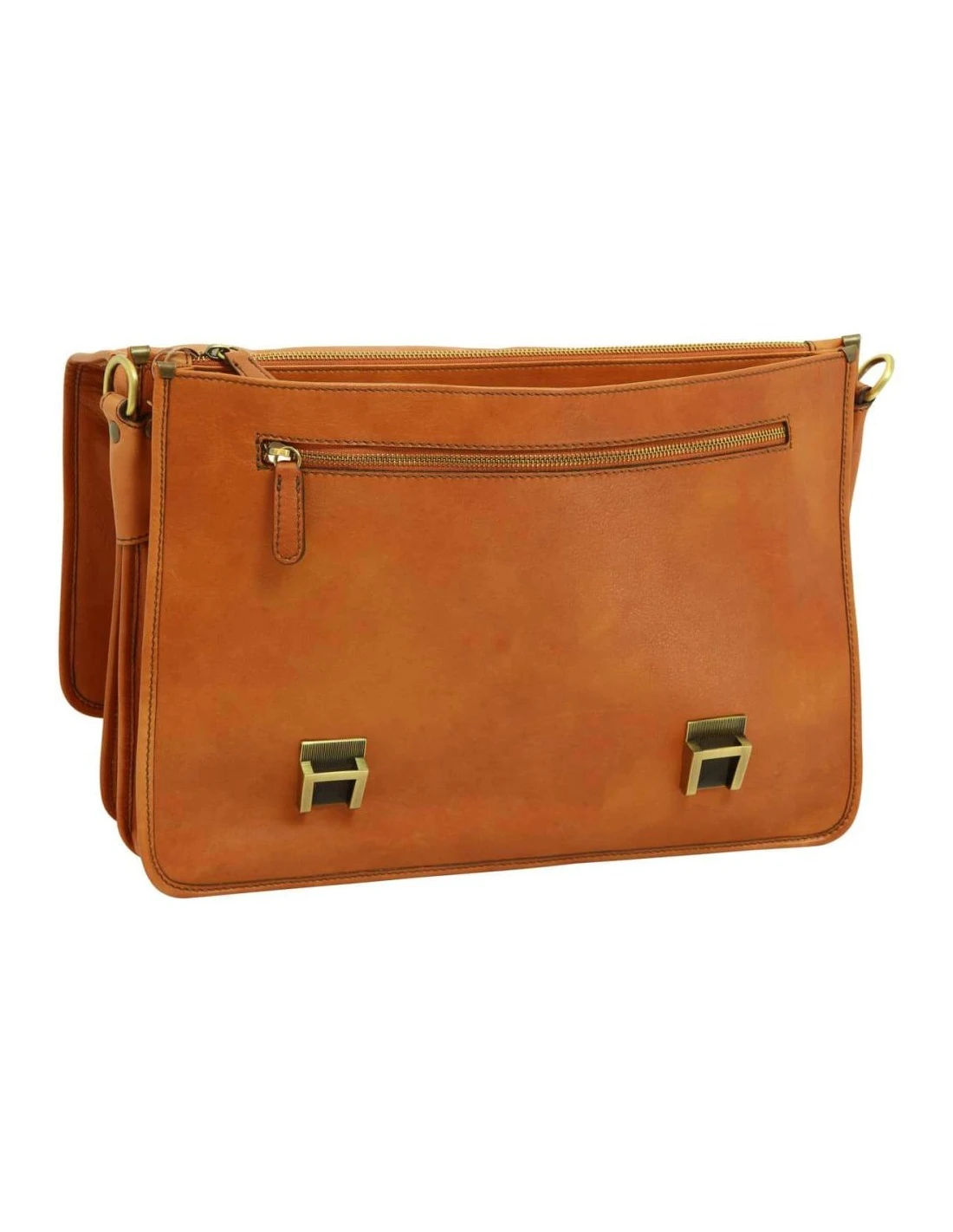 Cartella in pelle italiana, fatta in pregiata pelle di vitello, ha un ampio scomparto principale, numerose tasche per organizzare i tuoi effetti personali e una chiusura doppia a scatto con chiave funzionante. La tracolla regolabile con patch imbottito la rendono comoda da portare tutto il giorno.