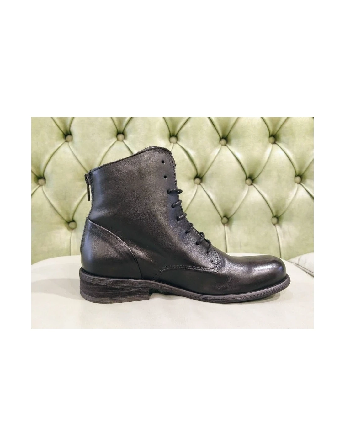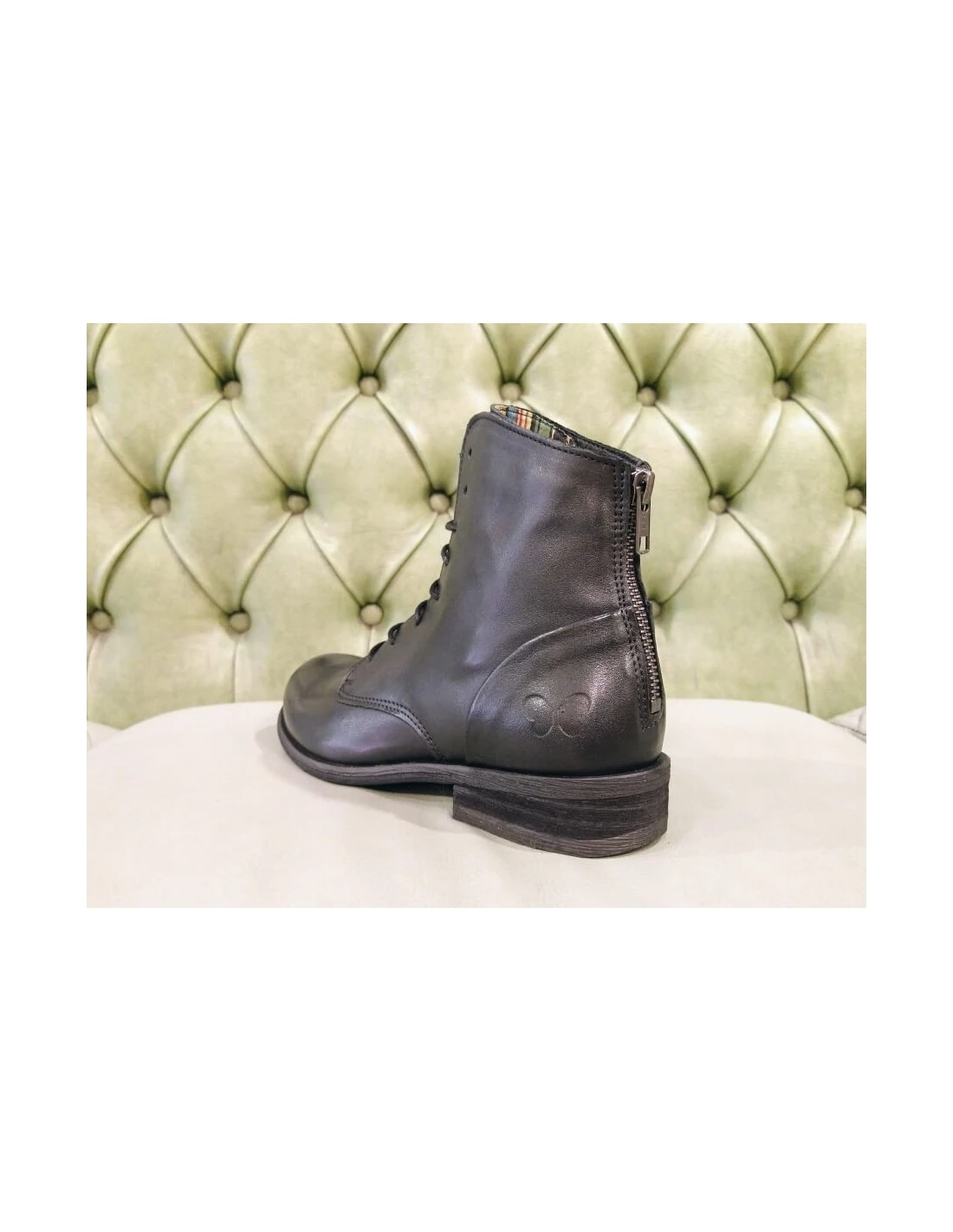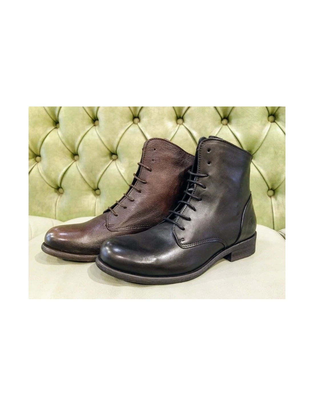 Stivaletti bassi alla caviglia, tipo anfibi soft, in pelle nera o marrone. Con suola in gomma. Perfetti per l’inverno e per un look casual e fashion. Gli stivali sono allacciati, hanno la cerniera posteriore  e la fodera in cotone stampato Felmini.