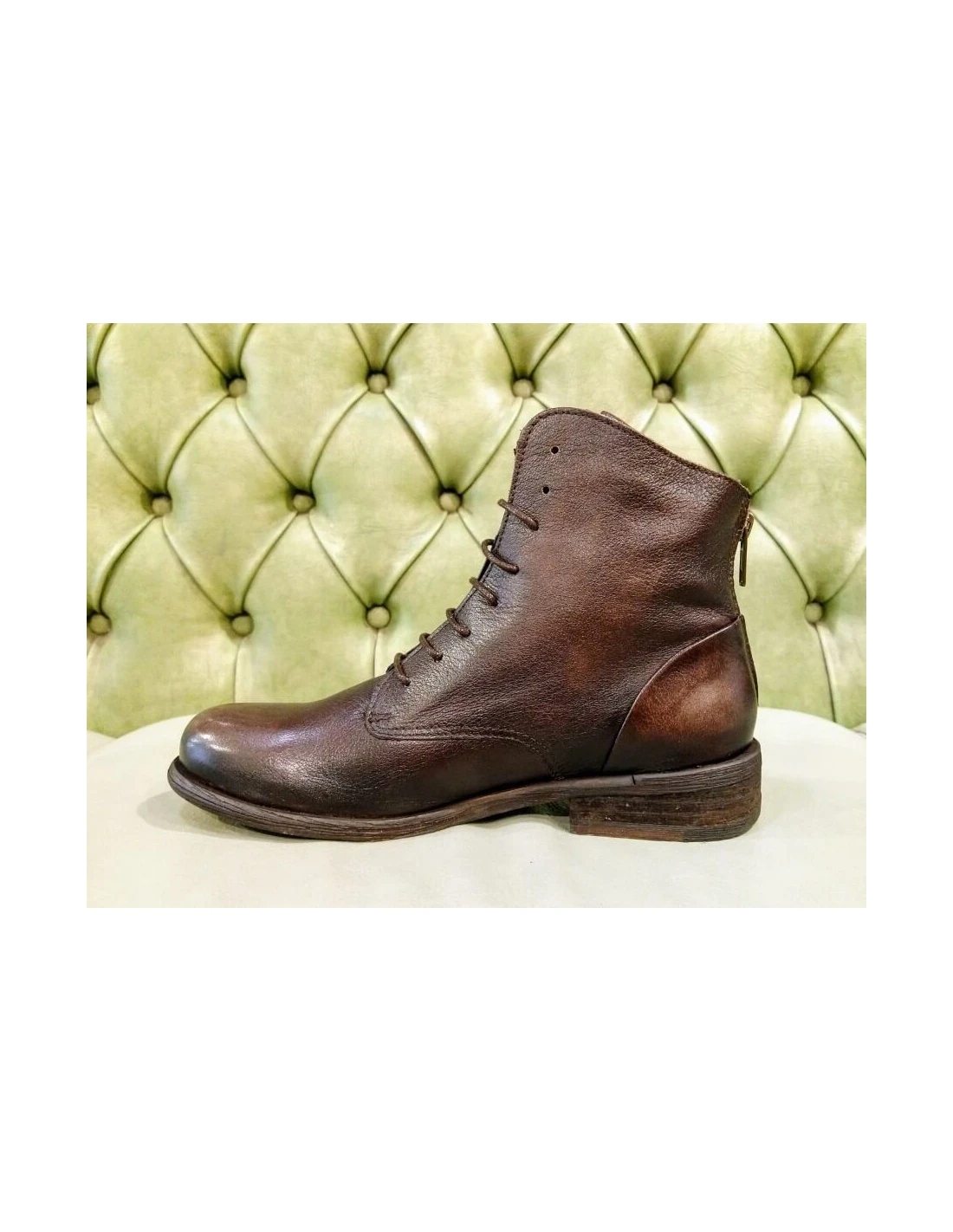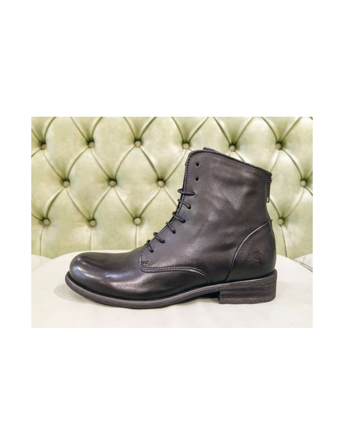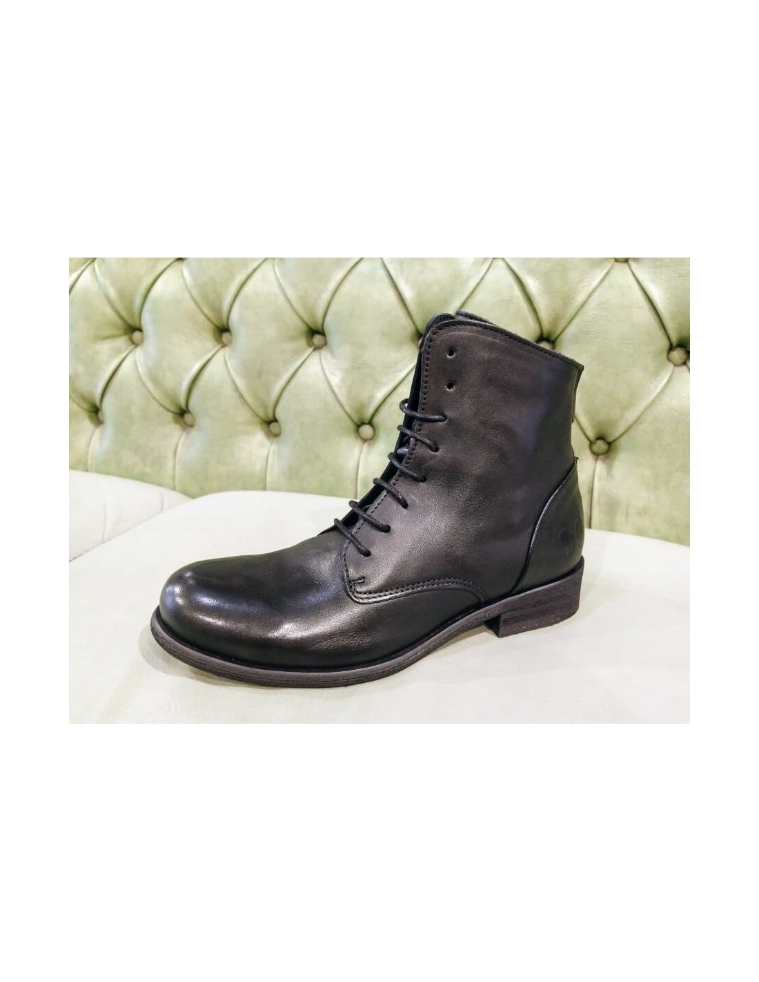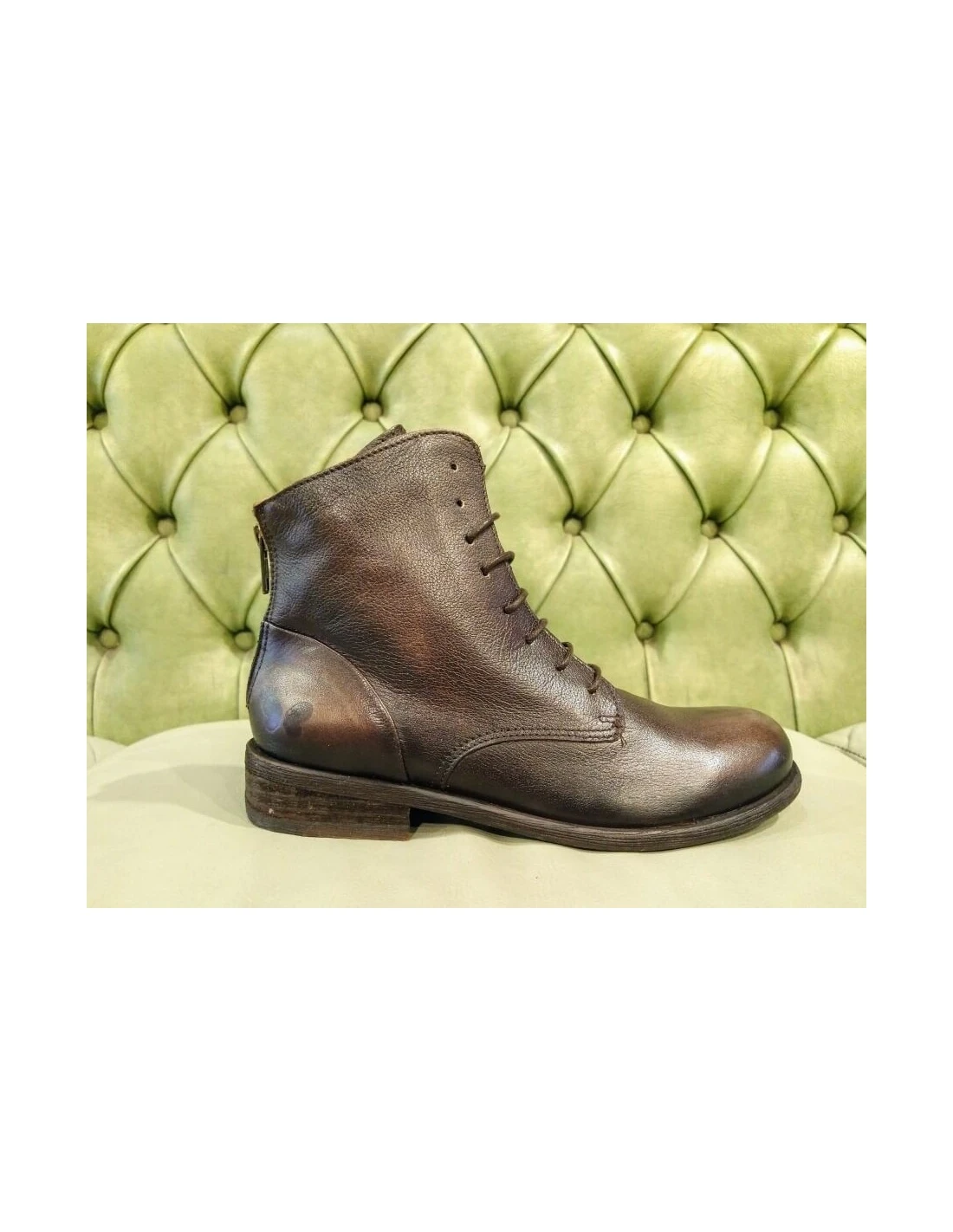Stivaletti bassi alla caviglia, tipo anfibi soft, in pelle nera o marrone. Con suola in gomma. Perfetti per l’inverno e per un look casual e fashion. Gli stivali sono allacciati, hanno la cerniera posteriore  e la fodera in cotone stampato Felmini.