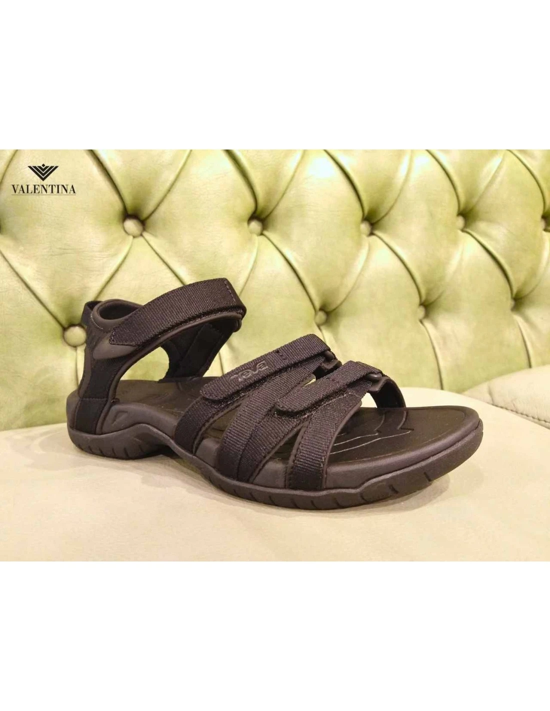 Sandali Teva, modello Tirra, con plantare morbido e alto al tallone. Chiusi con i classici passanti a strappo tipici di teva, sono comodissimi e adatti a escursioni leggere e anche in città. Suola in gomma riciclata 50%. Sandali vegan e attenti all’ambiente.