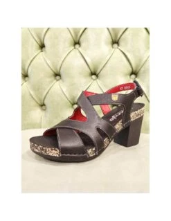Sandali da donna in pelle morbida e colorata, disponibili neri o cuoio. I sandali hanno un comodo tacco 6cm in gomma, ben basato, con plateau di 2 cm. I cinturini di pelle sul piede sono incrociati in modo avvolgente che tenfgono il piede fermo e sono esteticamente molto belli. La comodità dei sandali è nell’allacciatura a strappo (velcro) dietro al piede, nel morbido sottopiede imbottito in pelle e nella pianta anatomica.