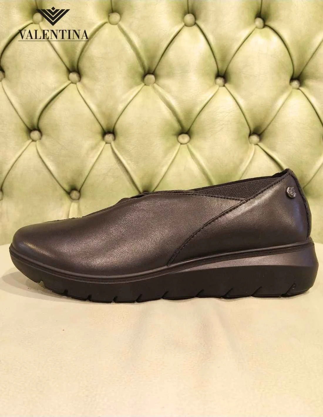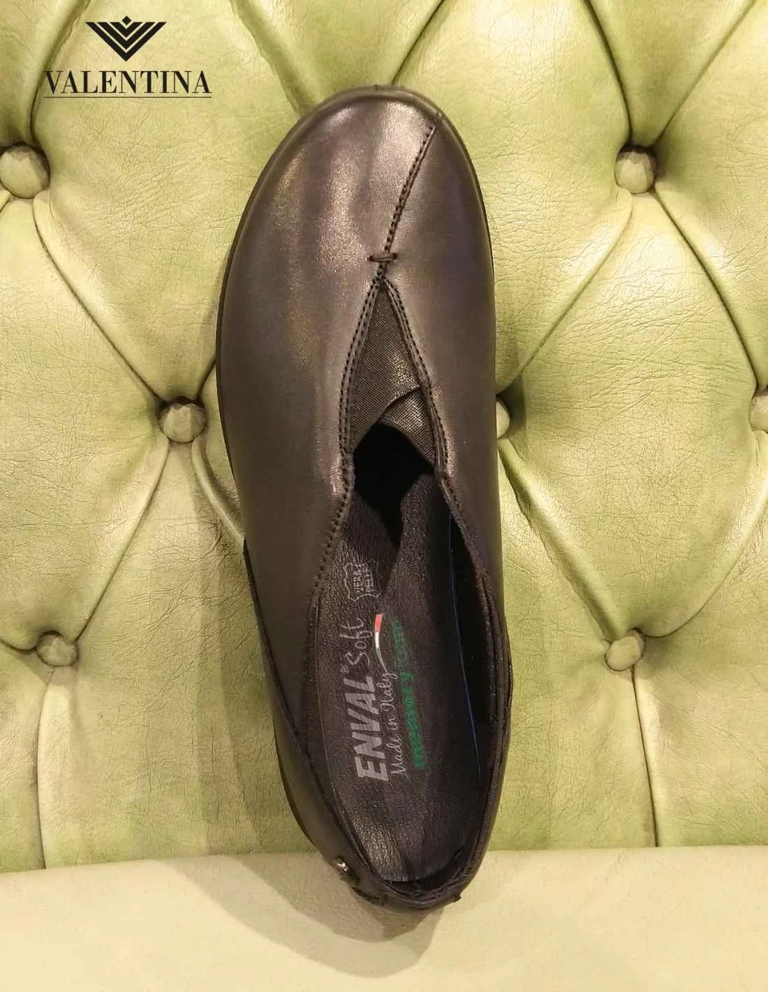 Scarpe comode Enval Soft da donna stile pantofoline, in pelle di nappa morbida, colore nero. Calzano morbidissime come guanti, sono da infilare, senza chiusura. Suola in gomma con rialzo comodo al tallone. Suoletta interna estraibile con memory foam. Scarpe comodissime.