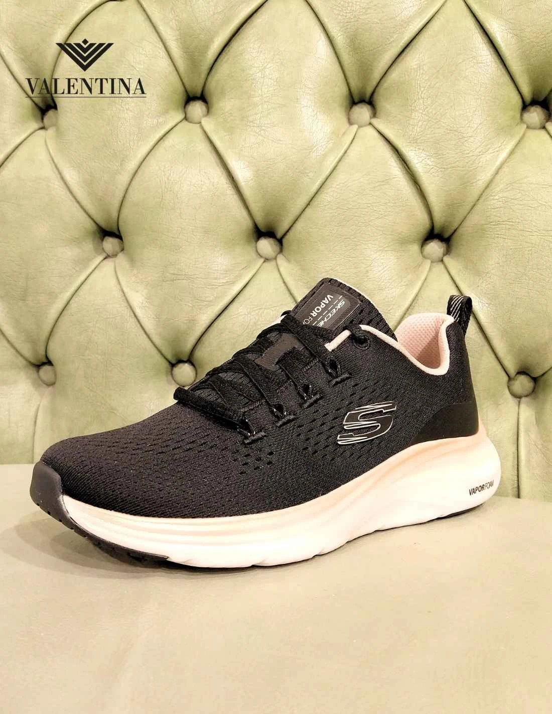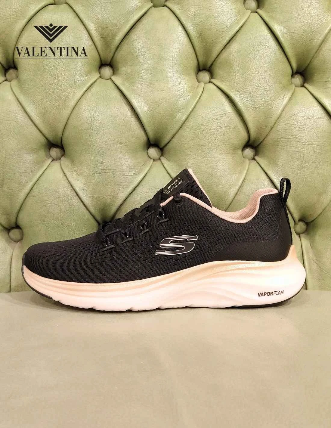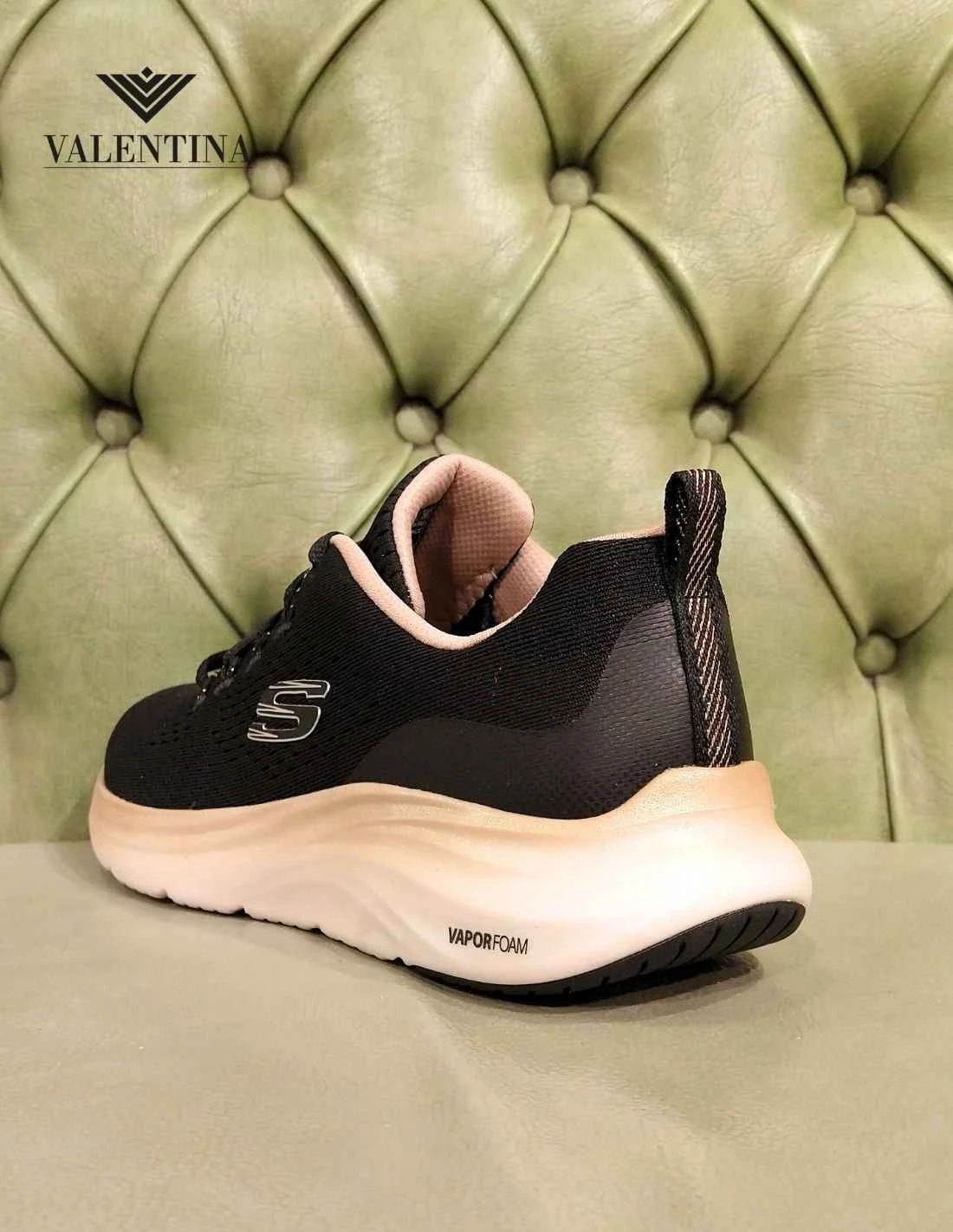 Skechers Vapor Foam, sono scarpe Skechers da donna molto leggere, con l’innovativo Vapor Foam , un memory fpoam ultraleggero. In colore bianco con dettagli argento sono le scarpe ideali per la primavera 2025. Leggere, allacciate, comode e pratiche, sono scarpe da donna vegan.