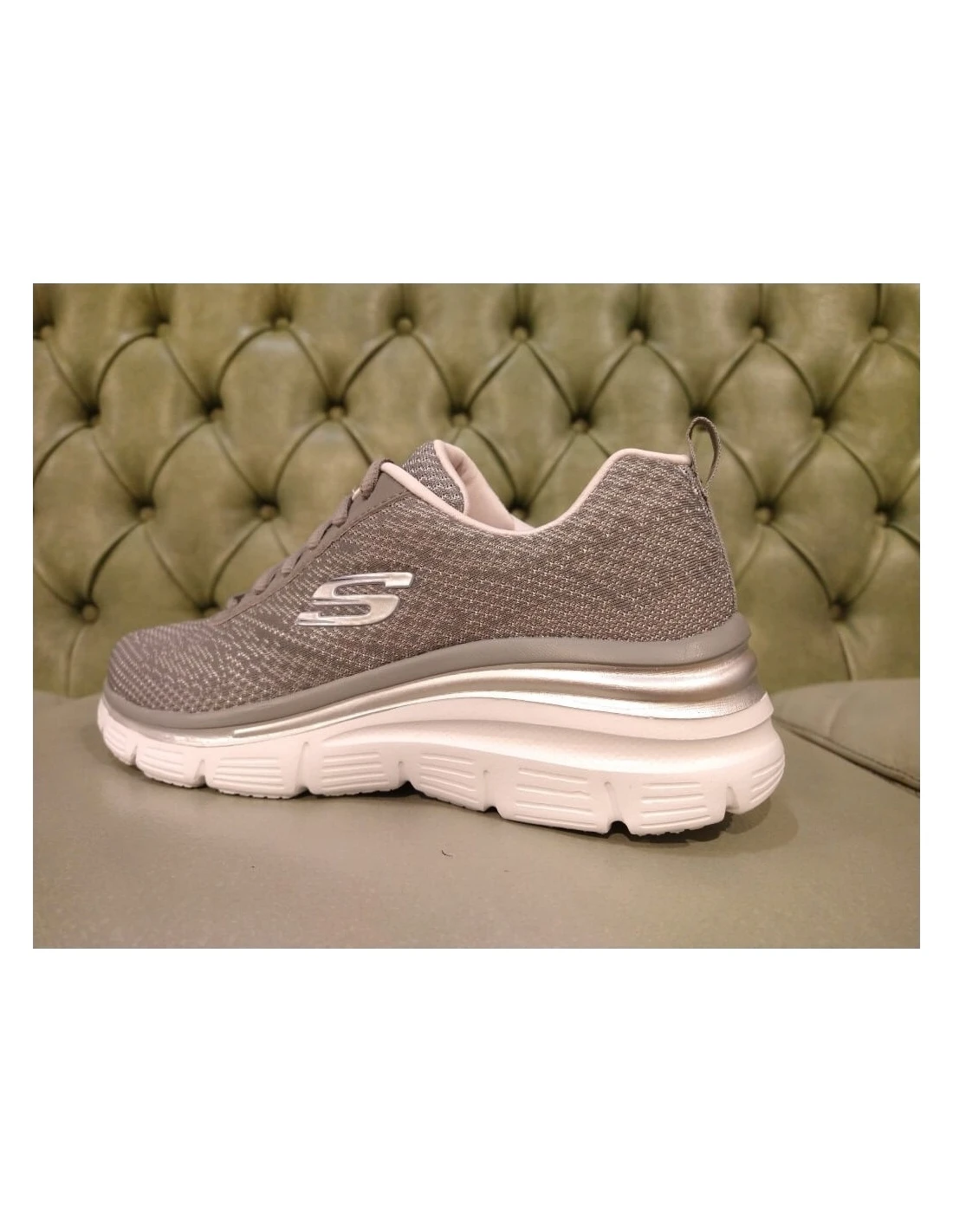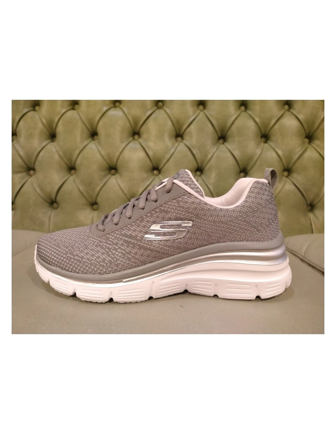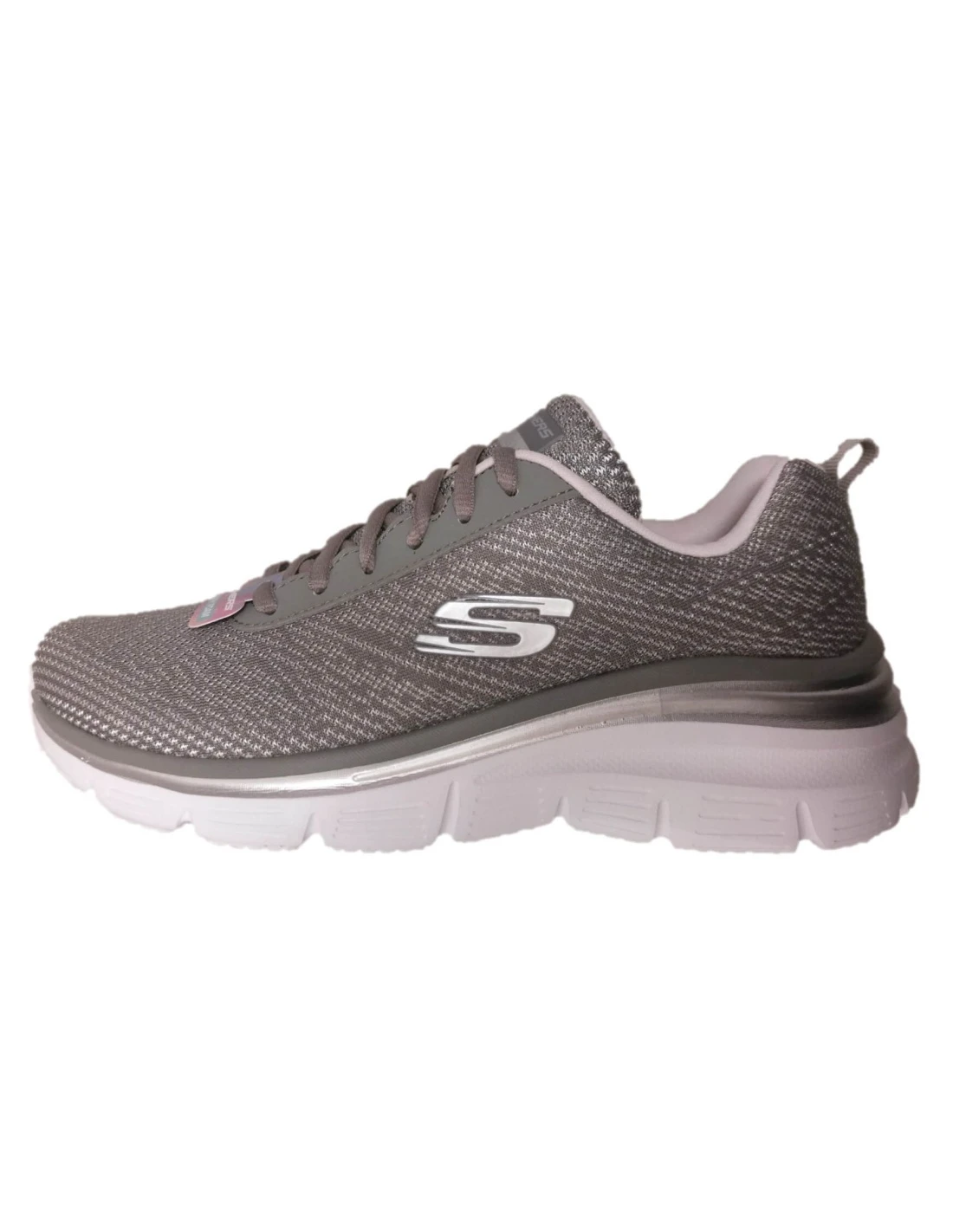 Scarpe sportive da donna in tessuto grigio, con tallone rialzato. Scarpe memory foam by Skechers, della linea Skechers Fashion Fit Bold Boundaries.