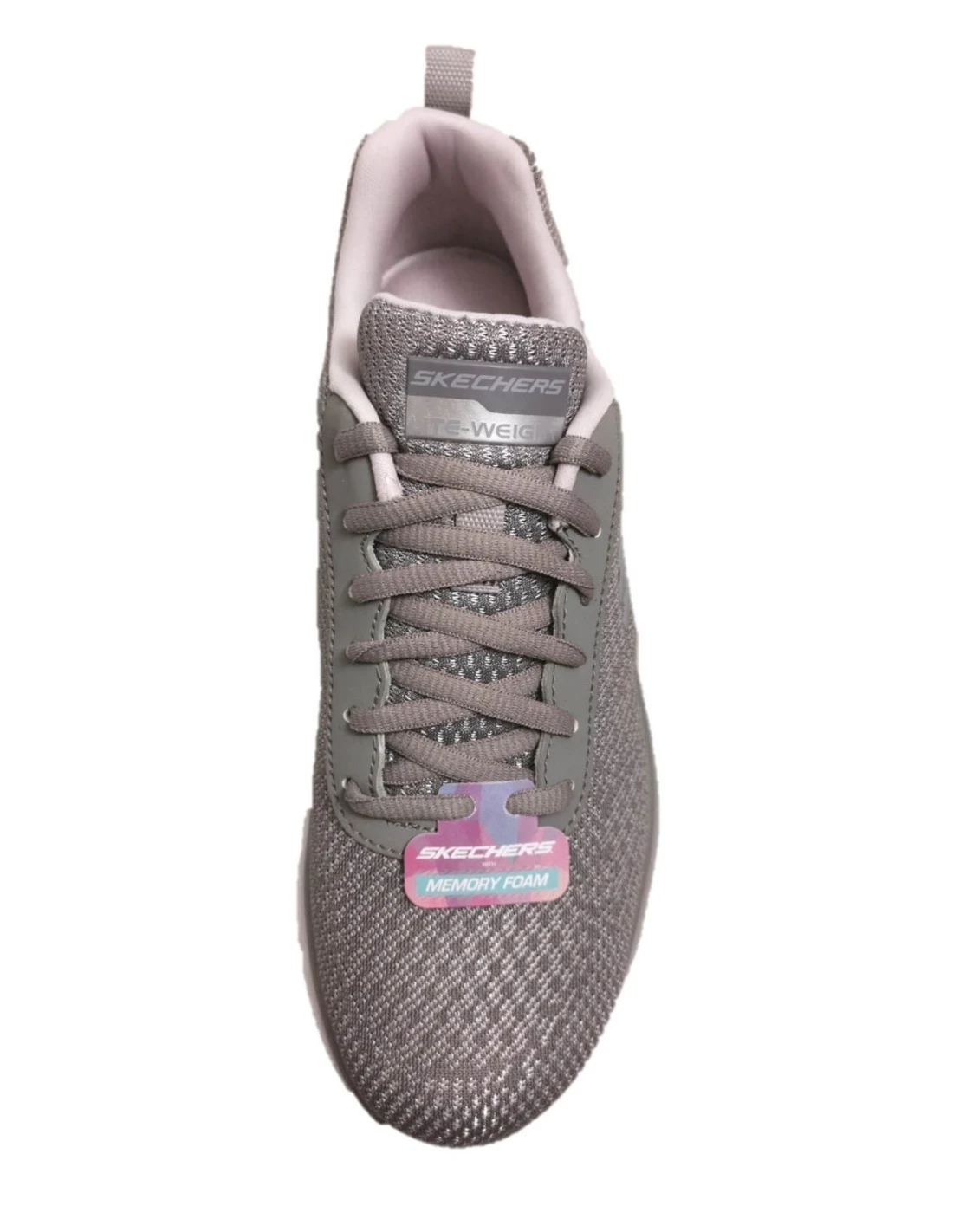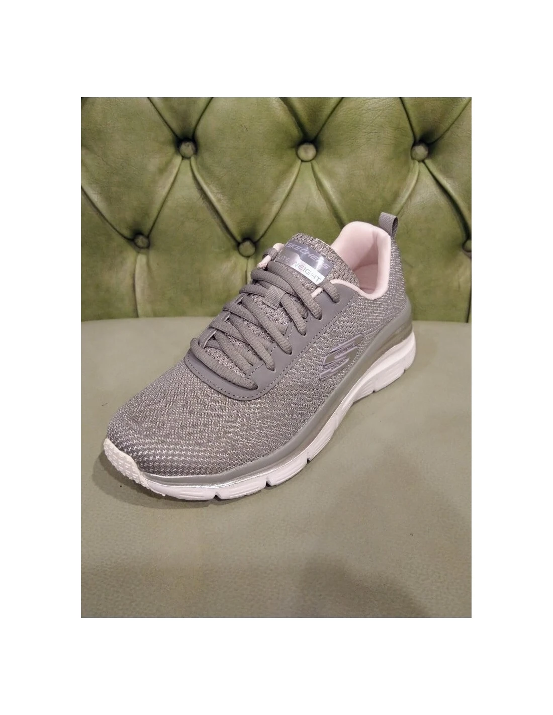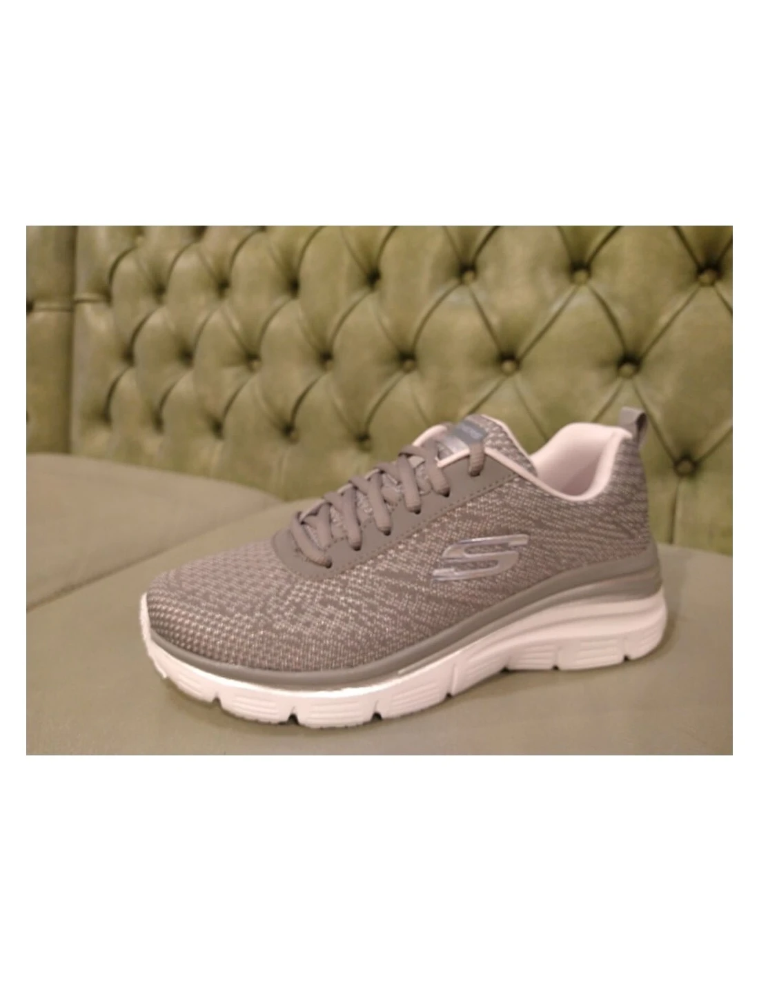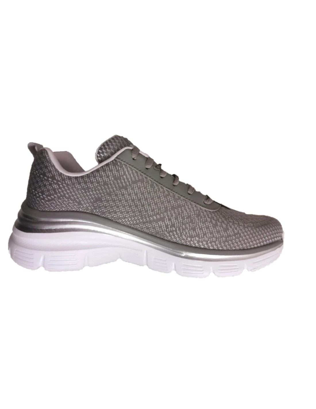Scarpe sportive da donna in tessuto grigio, con tallone rialzato. Scarpe memory foam by Skechers, della linea Skechers Fashion Fit Bold Boundaries.