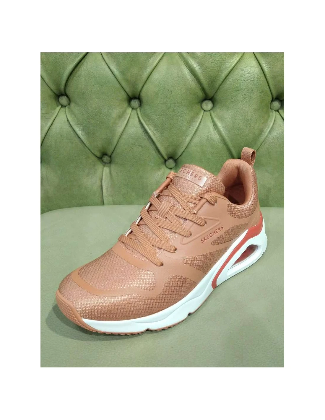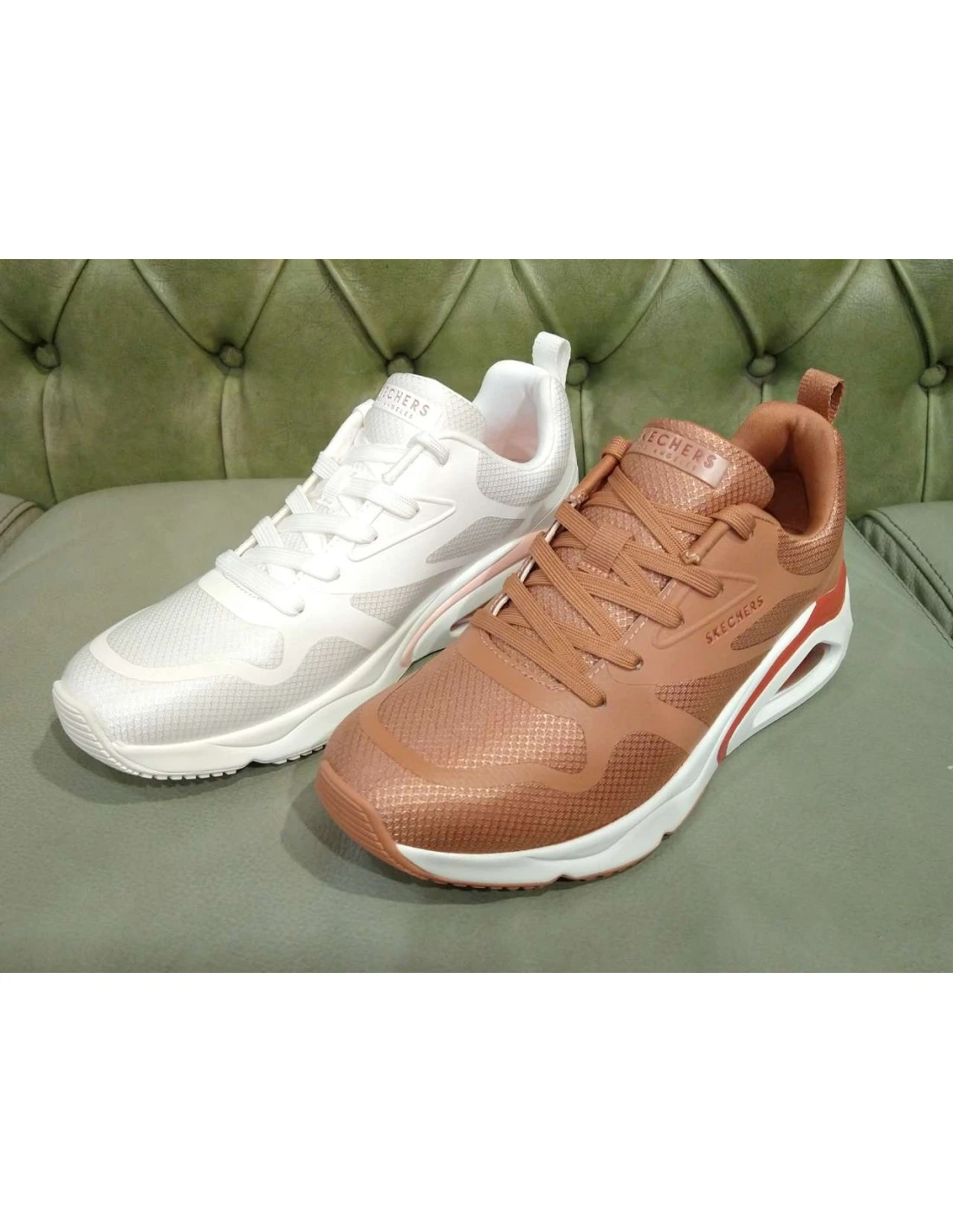 Per l’estate 2024 ecco le scarpe Skechers da donna con lacci, comode flessibili e leggere. Con air cooled memory foam. Colore bianco o argilla. Con cuscino d’aria al tallone, rialzato.
