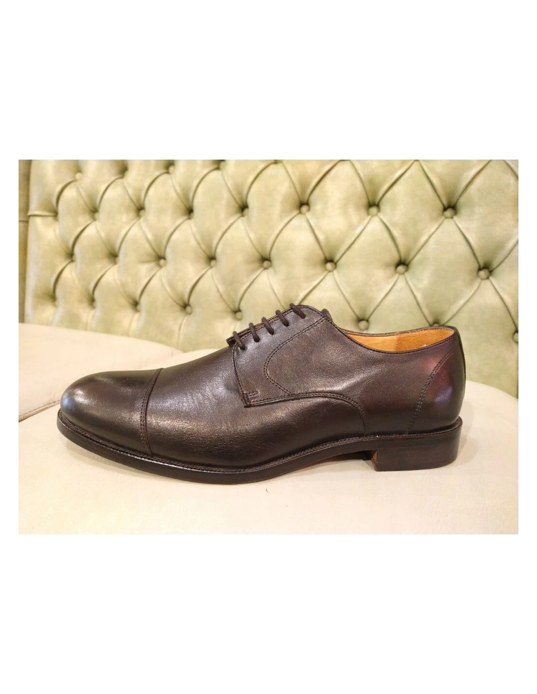 Scarpe basse da uomo, allacciate. La pelle è lavorata in modo artigianale. E’ perfetta per tutte le stagioni. Pratiche e abbinabili con l’abbigliamento formale elegante. Linea spezzata sul piede.