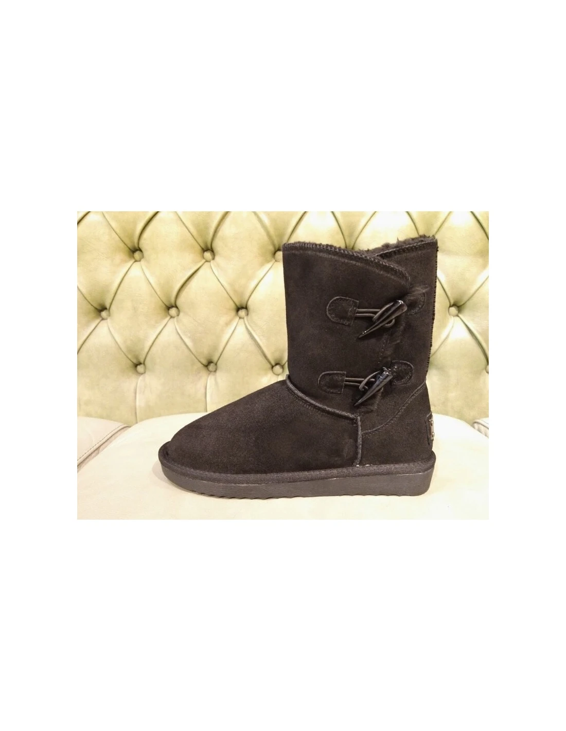 In pelle di nabuck, con suola leggera. Comodi e sportivi, con pelo interno. Gli stivaletti sono da infilare, con due chiusure tipo Montgomery.