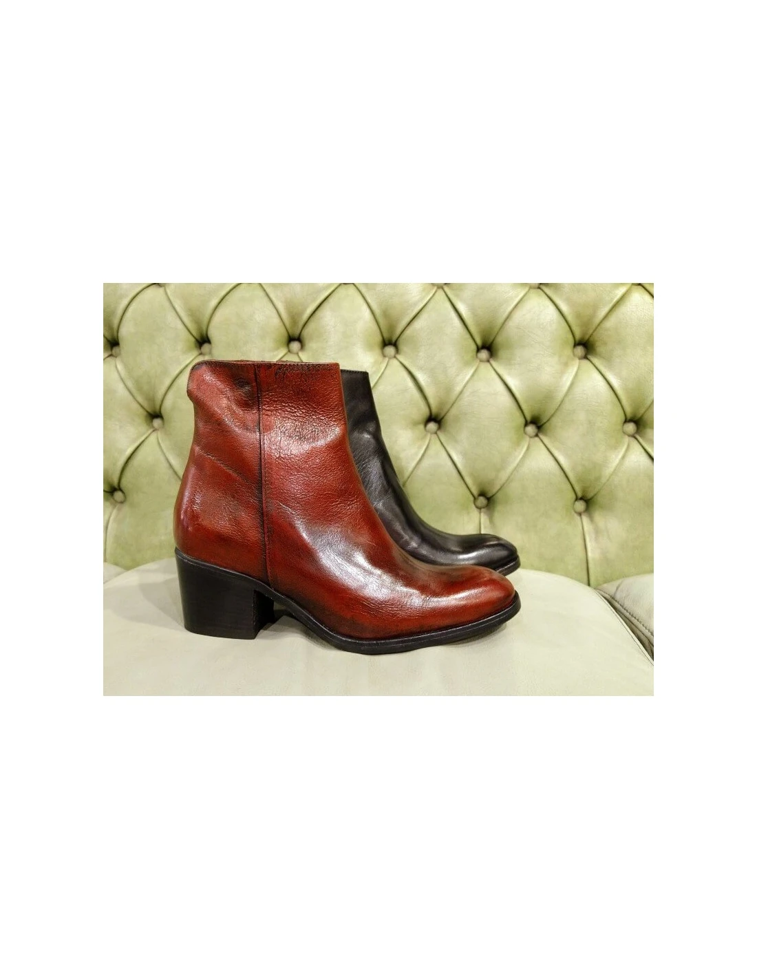Stivali artigianali bassi da donna, in bellissima pelle marrone rubino o nera, con piede dalla forma leggermente sfilata. Chiusi con cerniera laterale, hanno un tacco 6 cm. La suola è in cuoio e gomma. Stupendi stivali per un look glamour.