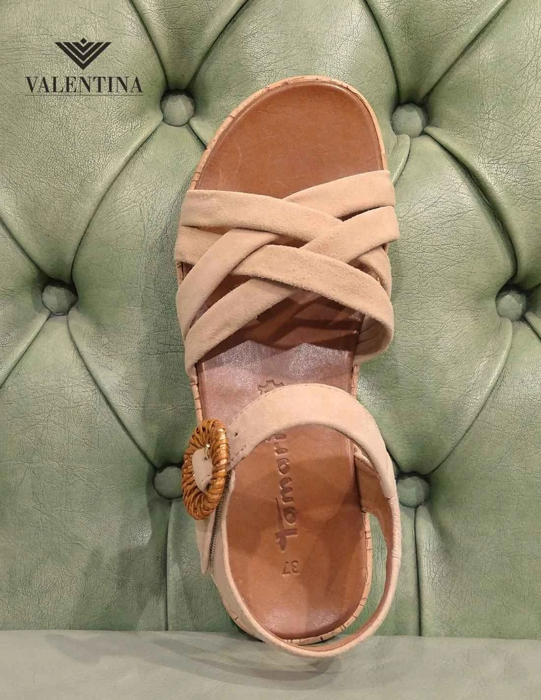Questi sandali da donna Tamaris sono comodi e belli: in pelle di alta qualità, hanno un design elegante con cinturini intrecciati sul piede e una chiusura con fibbia rotonda. Il sandalo ha una zeppa di 3 cm al tallone, ideale per l’uso quotidiano. La punta è arrotondata e la chiusura con velcro rende facile indossare e togliere i sandali. Disponibili bianchi o cuoio.