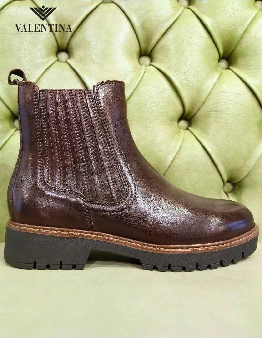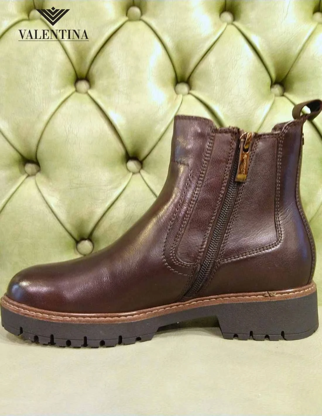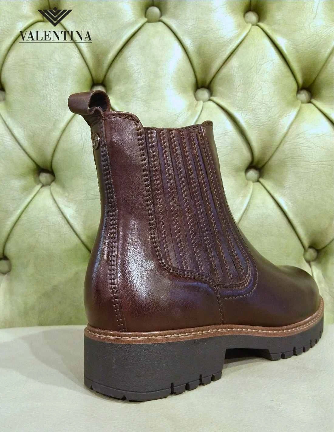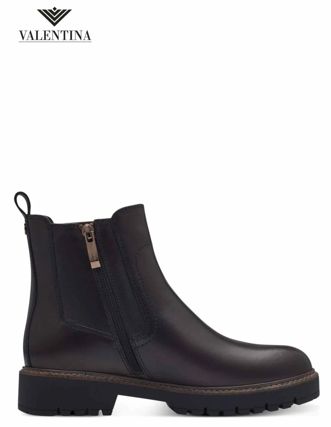 Stivaletti maroni con tacco basso in gomma carrarmata, con uno spessore di 4 cm al tallone. In vera pelle color marrone scuro mogano, hanno la chiusura con cerniera laterale. Sono alti sopra la caviglia, per una lunghezza di 13 cm dal tallone. Stile e comodità garantiti dal plantare morbido con tecnologia Touch It di Tamaris.