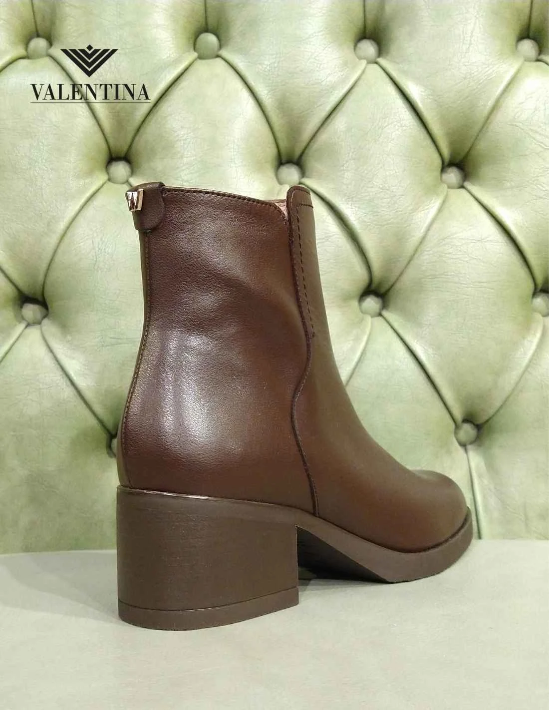 Stivaletti invernali alla caviglia, con tacco comodo alto 5,5 cm. Fatti in vera pelle molto morbida, sono chiusi con cerniera laterale. Forma molto comoda, con suola in gomma massiccia. Linea pulita e semplice, si abbinano bene con la maggior parte dei capi del guardaroba invernale. Colore nero oppure marrone testa di moro