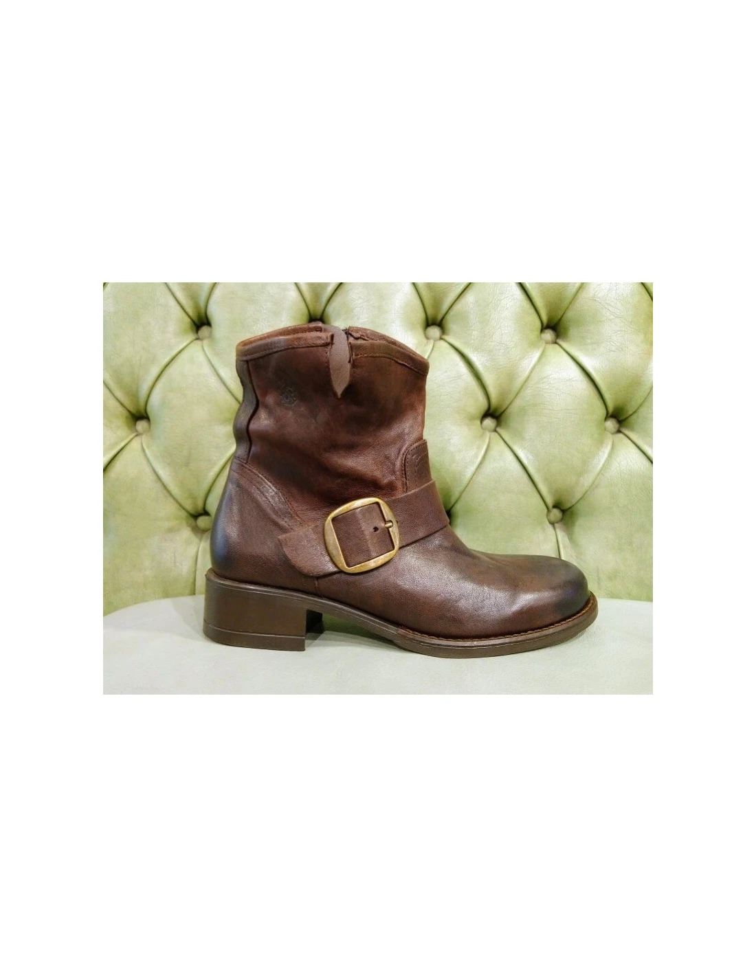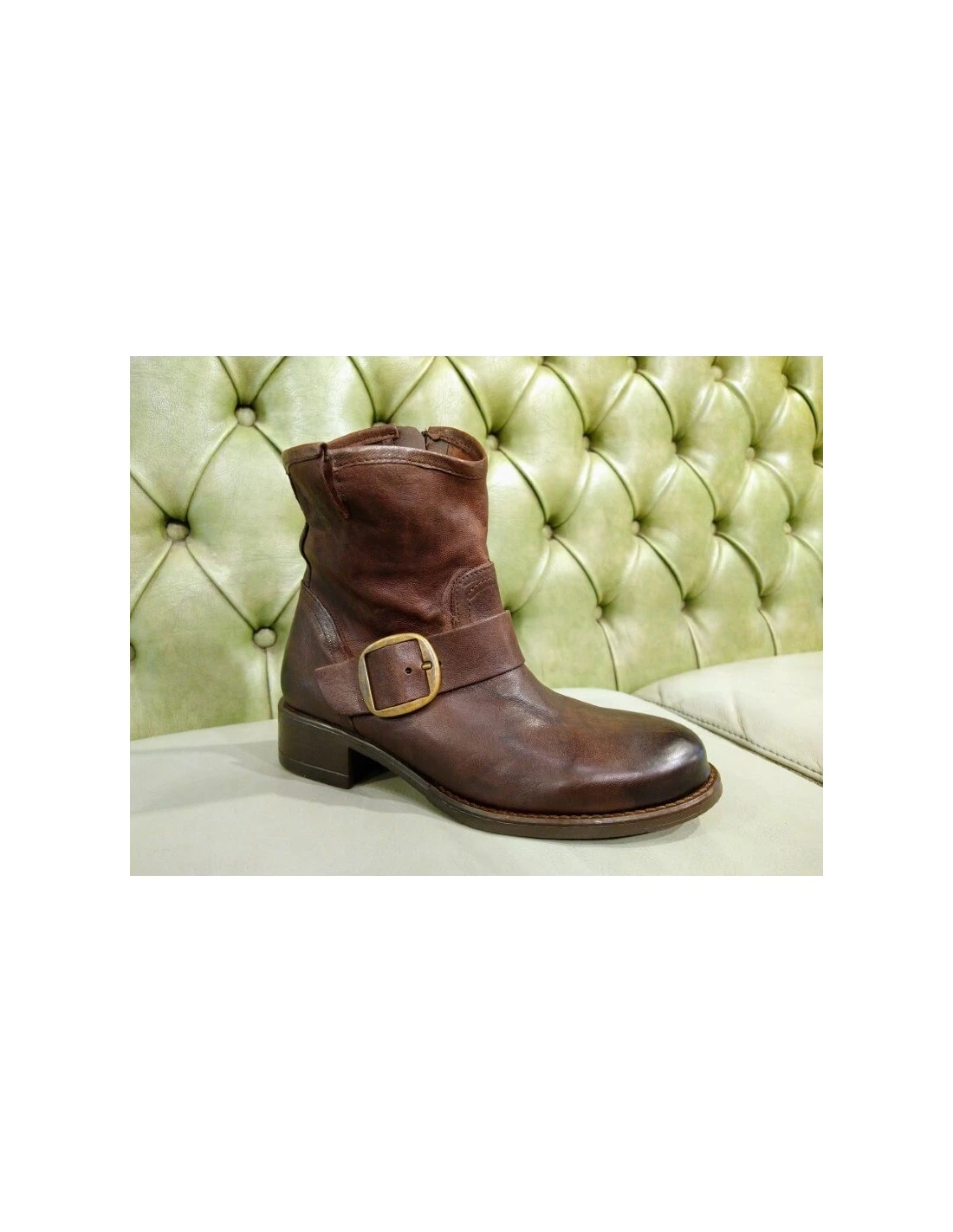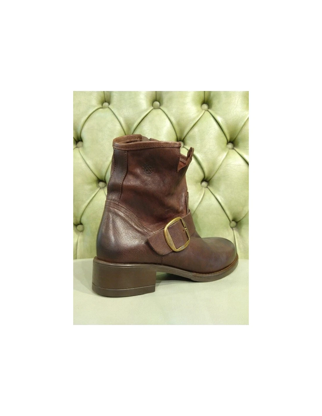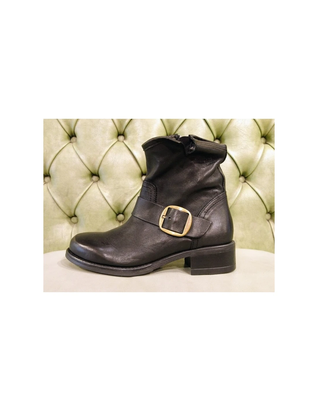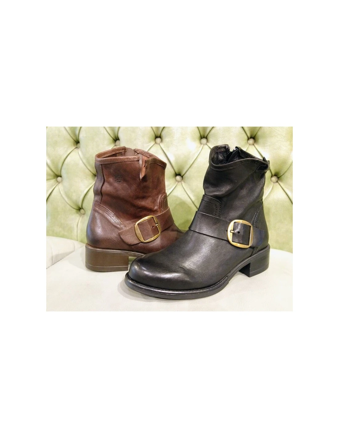 Stivaletti bassi con fibbia marca Yokono: un must-have. Con un tacco di 4 cm, questi stivaletti offrono comfort e stile. Fatti con vera pelle lavorata in modo eco sostenibile, sono la scelta perfetta per chi ama la moda responsabile. Fibbia metallica dorata sulla caviglia e chiusura con cerniera laterale per una calzata facile e di moda.